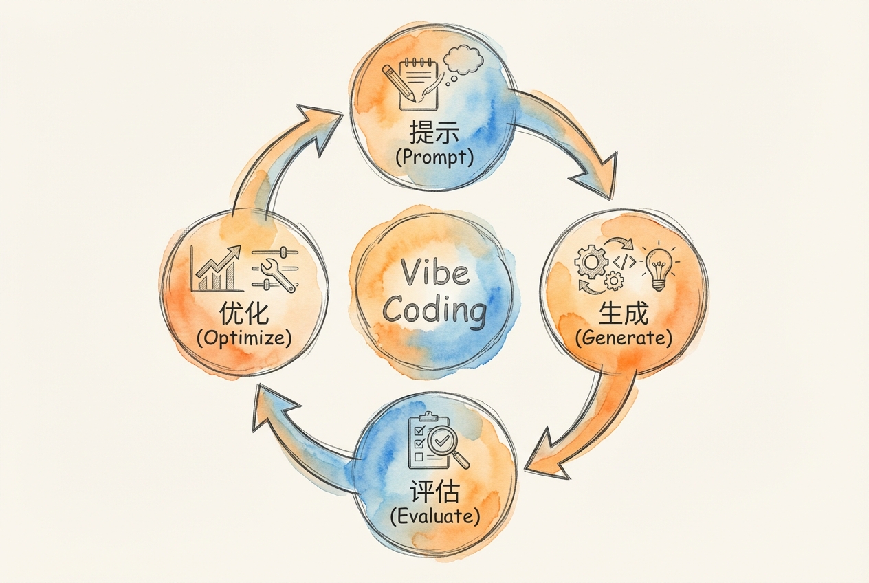 有效的 Vibe Coding 遵循一个核心循环:提示 → 生成 → 评估 → 优化