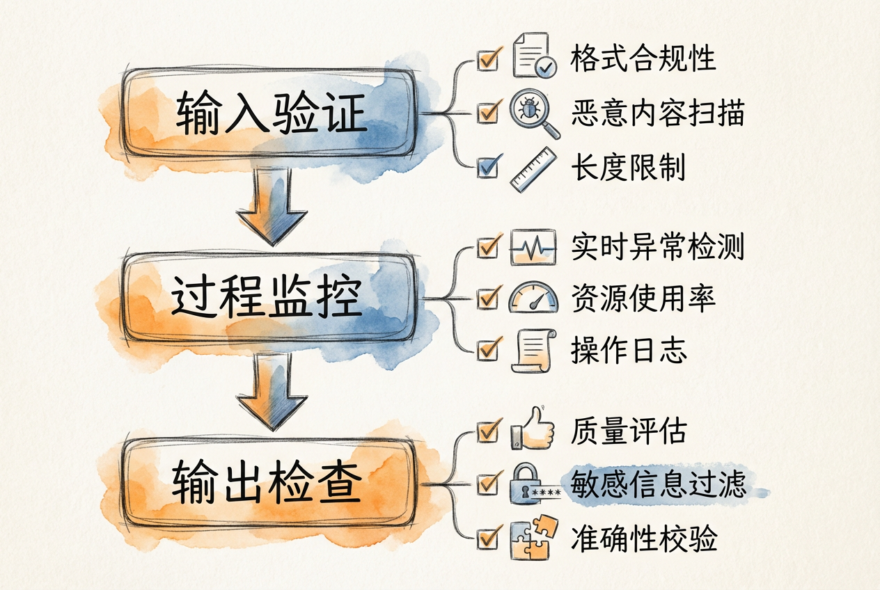 输出护栏对 AI 的最终输出进行验证,确保: